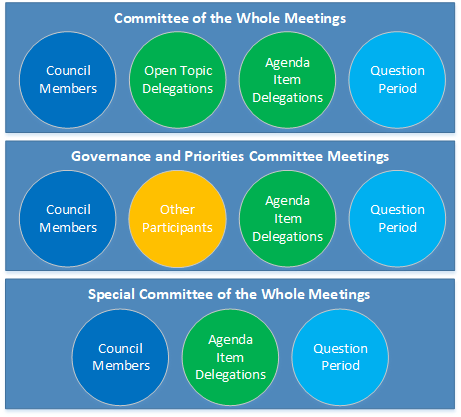 But that’s not all. Just as importantly, the COW serves as a mechanism for delegations to bring forward their own topics to the committee which are relevant to the city, and as well, the COW serves as a means for delegations to speak upon the subjects that are already on the agenda.
